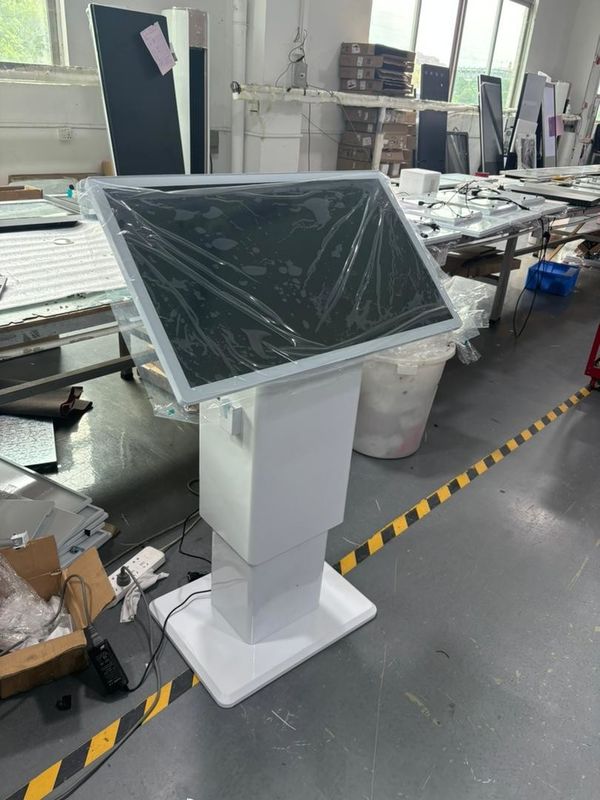 | Netwerk: | WIFI / LAN / 3G / 4G Facultatief | Productnaam: | Zilver Zwart Aluminium Basis Interactieve Kiosk 43 inch-65 inch Touch Kiosk Tv Signage Floor Stand D |